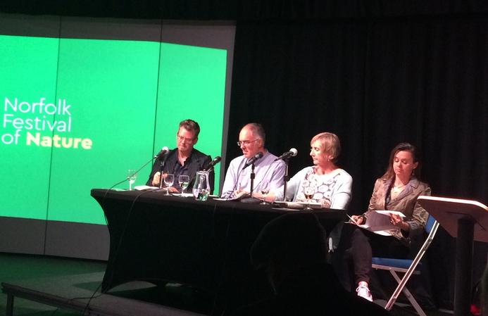 This was followed by a panel debate ('The Festival Debate', no less) featuring nature-writers Jean McNeil, Karen Lloyd, Laurence Rose and myself. Jos Smith (UEA) chaired. The debate was concerned with "exploring the role of nature writing TODAY – what is the relationship between nature writing and conservation practice, what does it offer over television documentaries like Blue Planet and social media campaigning, and how important is it to the way we view nature into the future?" We might, said Jos, "add to this a question about what form nature writing might/should take - celebration? elegy? activism? how do we balance these complex emotions in a landscape under so much pressure?"