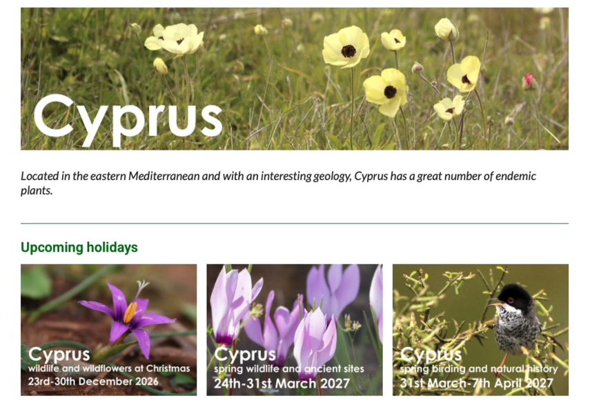 In late March and early April, I was back in Cyprus for the third spring running (for 2025, see here, here and here; for 2024, see here and here). Like last year, I was helping Philip Precey lead a https://wildlife-travel.co.uk/ group – this time focusing more on ‘easy birding’ than botanising. The trip was intentionally timed for a week later: although this meant that several of the orchids were past their best, it did make for some impressive bird migration. A full trip report will appear on the Wildlife Travel website later this month. Come and join us next year!