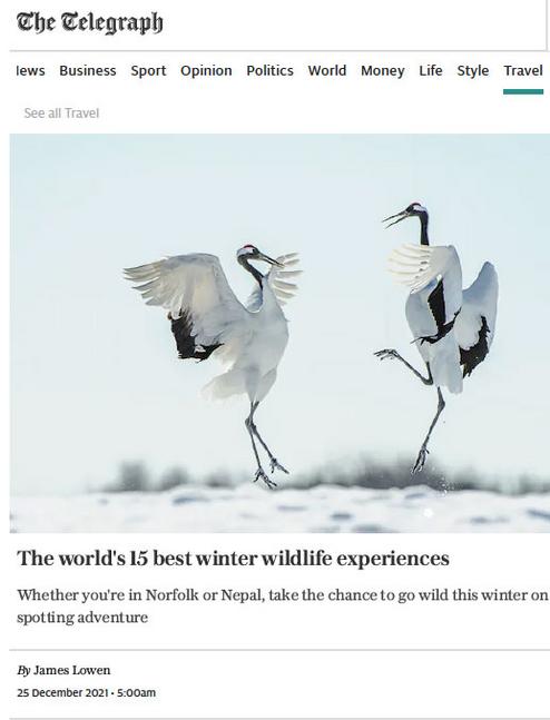 On Christmas Day (online) and Boxing Day 2021, I had the cover feature! This was a round-up of the best wildlife-watching experiences to be had in winter.